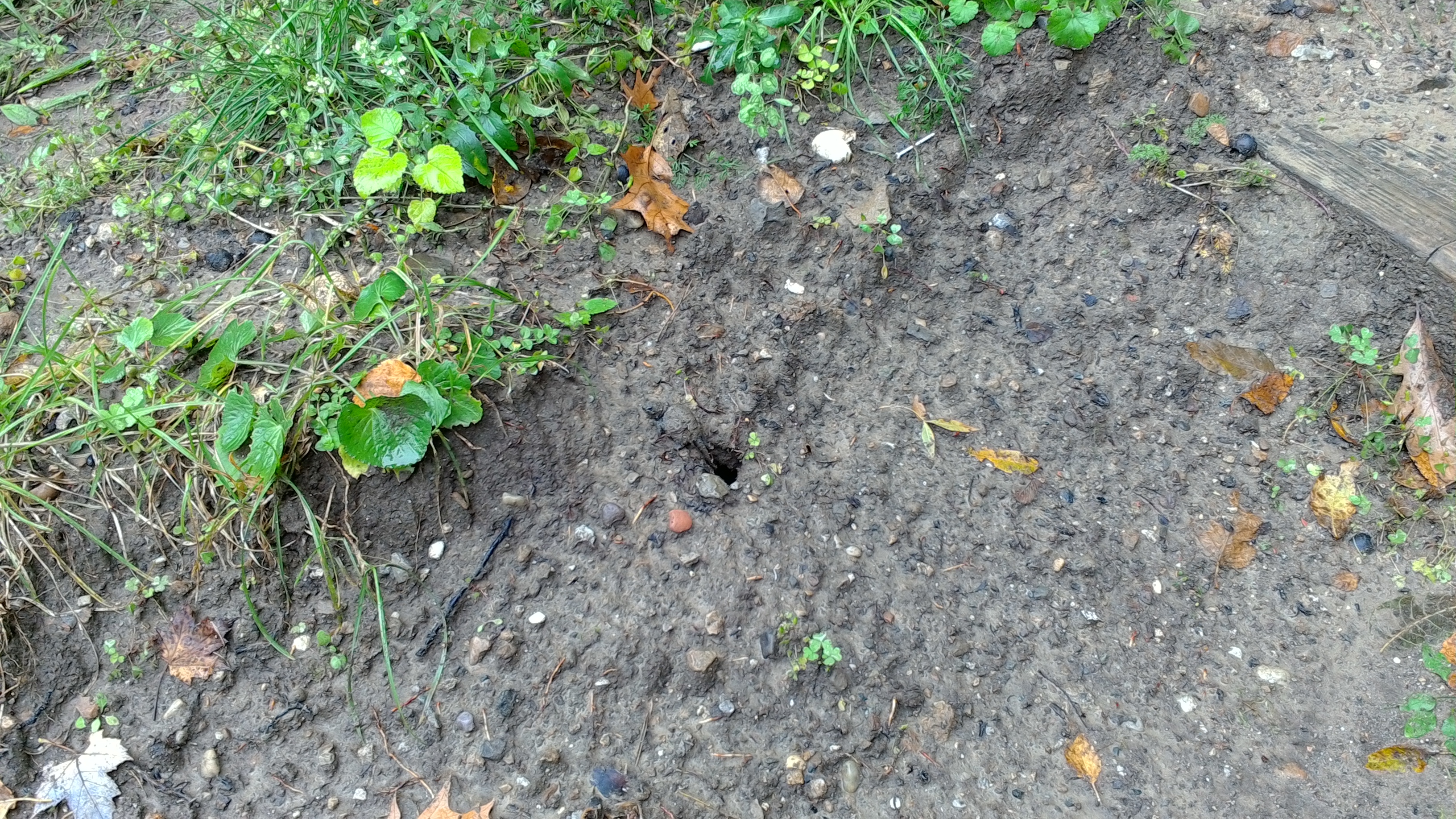 So five or six months ago I was startled by a pair of medium sized snapping turtles wandering around my yard. It didn't take them long to find that perfect spot and at that point I became the midwife to a clutch of eggs. About two weeks ago the first little turtle appeared. I was so excited I didn't get any pictures. I did however start checking the nest three or four times a day looking for signs of escape. Today was the day. This one was about 2/3 the size of the first one I had seen. The little one breached the next about 11:55am and took about 2 hours to make the run down to the lake 40/50 feet away and about 6 feet down. Despite several stumbles and falls the little turtles journey was successful.